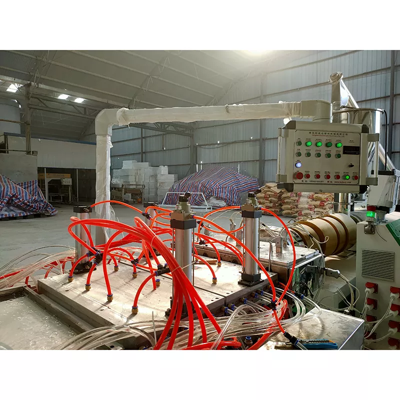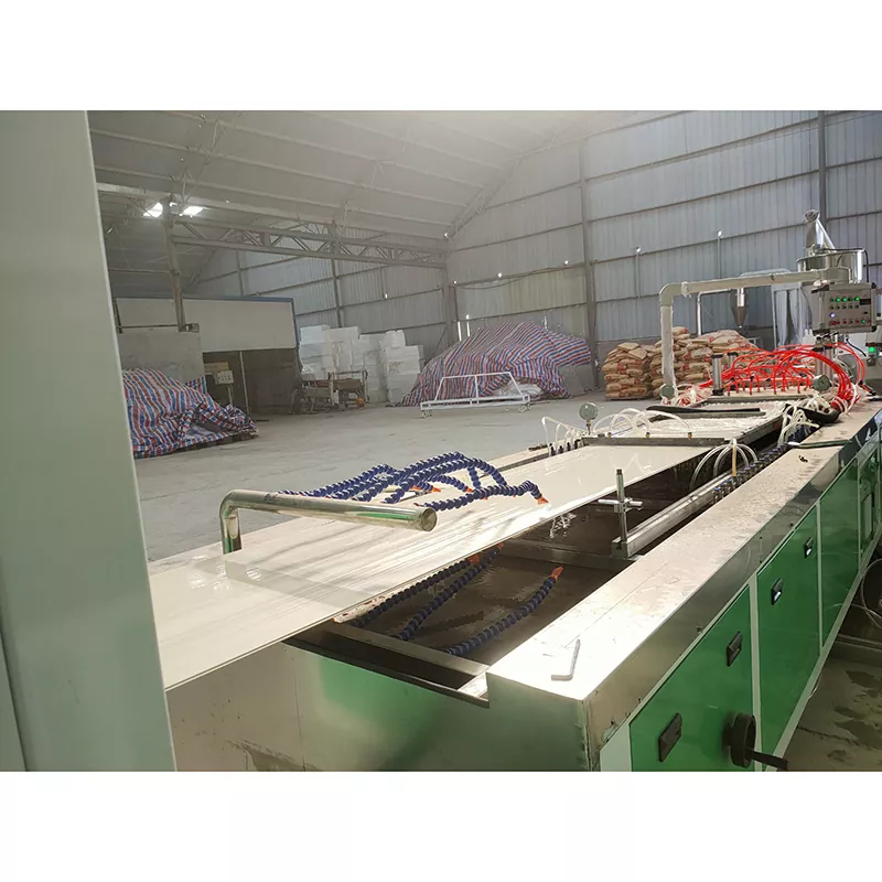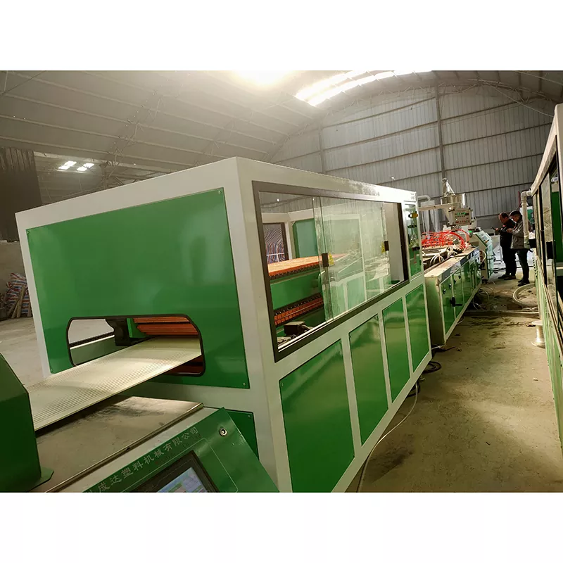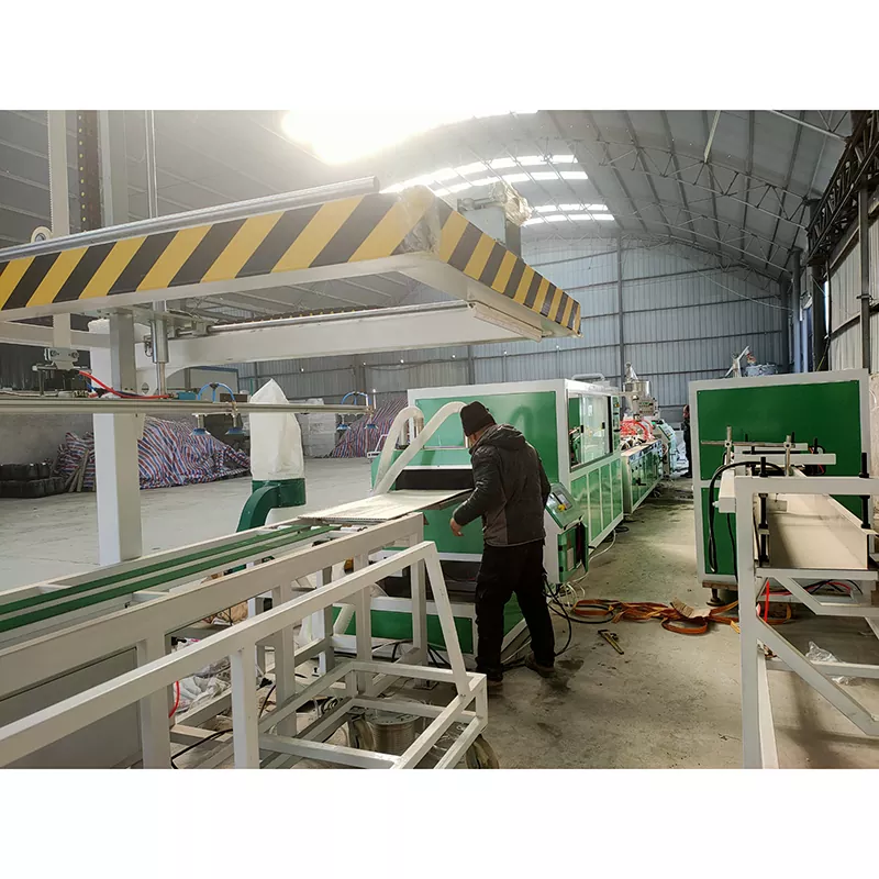 Rectifieuse, mélangeur, broyeur, extrudeuse conique à double vis, moule pour panneaux muraux, plate-forme de mise en forme sous vide pour panneaux muraux, machine de traction à double chenille, machine de découpe automatique sans poussière, codeur de déchargement automatique, toute la ligne fonctionne de manière stable, l'opération est simple et le le taux d’échec est faible.